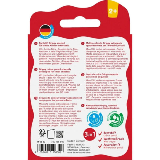 Faber-Castell Buntstift Grippy 6er Set mit weicher XXL Jumbo Mine